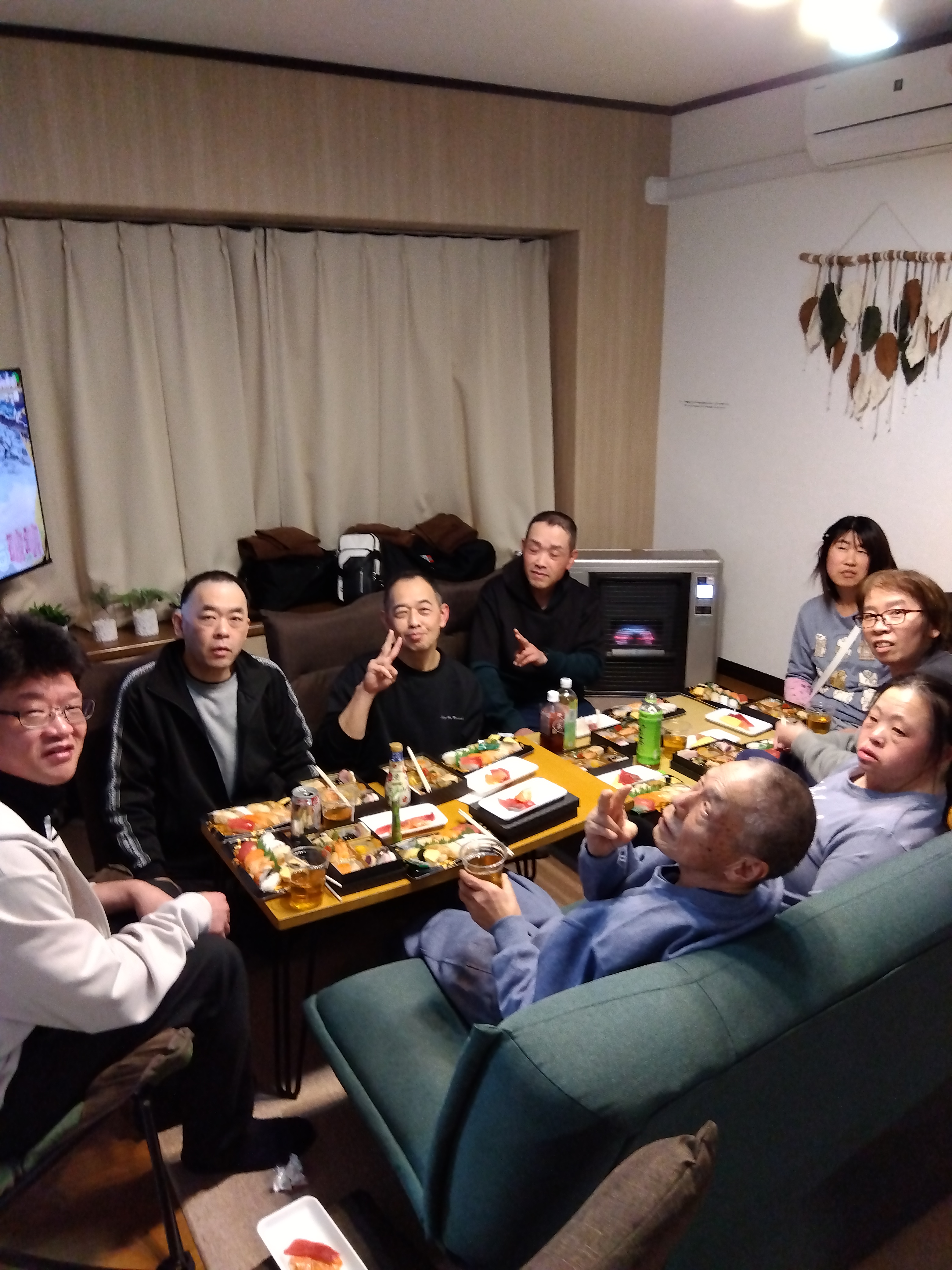 明けましておめでとうございます。令和7年12月31日~令和8年1月1日登別ハルズハウスカイトへ年末年始行事に行ってきました!一昨年より今流行の民家をリノベーションした貸別荘での1泊年越し行事は事前から皆さん楽しみにされており、当日も事故もなく楽しい行事となりました。また今年も一年、ウイング職員一同どうぞよろしくお願い致します。